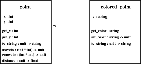 qui hérite de la classe point. La couleur est représentée par le champ c de type string. On ajoute une méthode get_color qui retourne la valeur de ce champ.